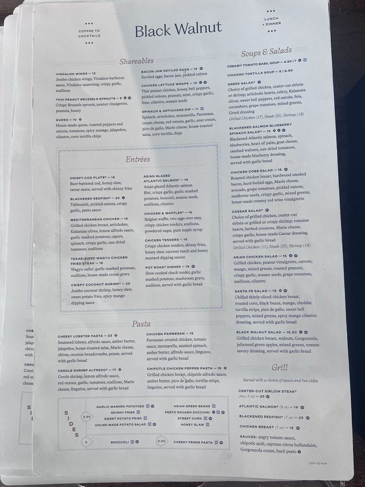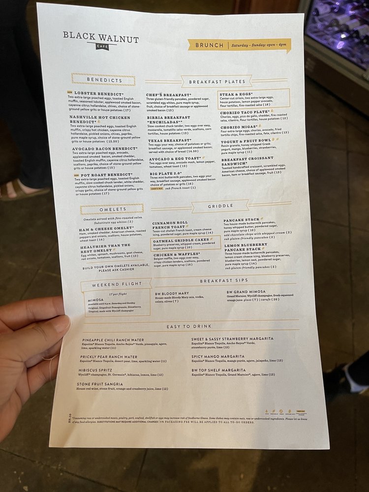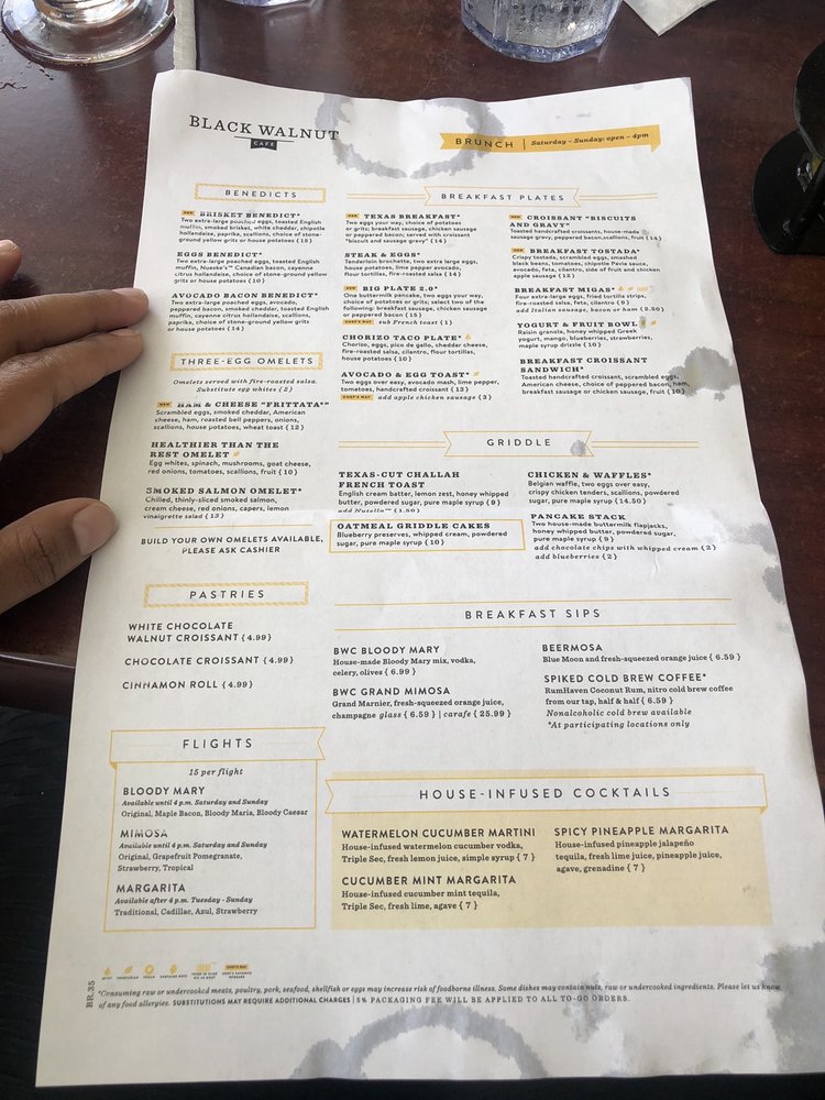 Introducing the Black Walnut Café in Houston, TX - A trendy New American café offering an abundance of breakfast, brunch, lunch, and dinner options. With a renovated vibe, plenty of indoor and outdoor seating, and a friendly waitstaff, this café has something for everyone. From pot roast grilled cheese to tiramisu gelato, the menu is diverse and sure to satisfy any craving. Notable options include the grand mimosa and chorizo migas with feta cheese. While some dishes like steak and eggs may not always hit the mark, the overall dining experience is enjoyable. Prices may be a bit steep, but the quality and variety of food make up for it. Whether meeting up with friends for a quick brunch or enjoying a leisurely dinner, Black Walnut Café is a welcoming spot for any occasion.
