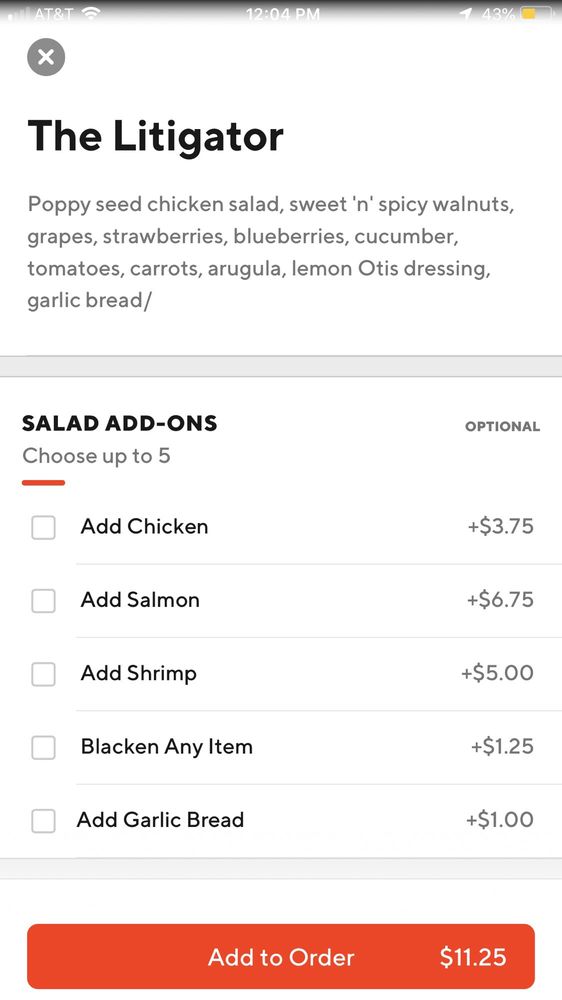 Grilled chicken, peanut vinaigrette, carrots, mango, mixed greens, roasted peanuts, crispy garlic, sesame seeds, tomato, scallions, cilantro
